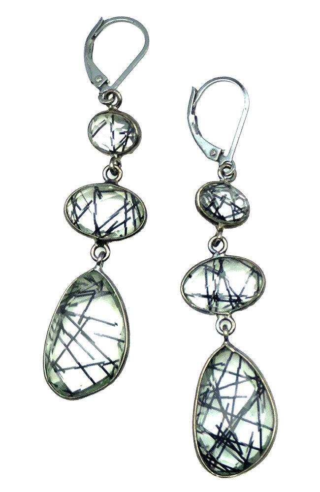 Rutilated Qtz Oxidized 3 Gem Earring