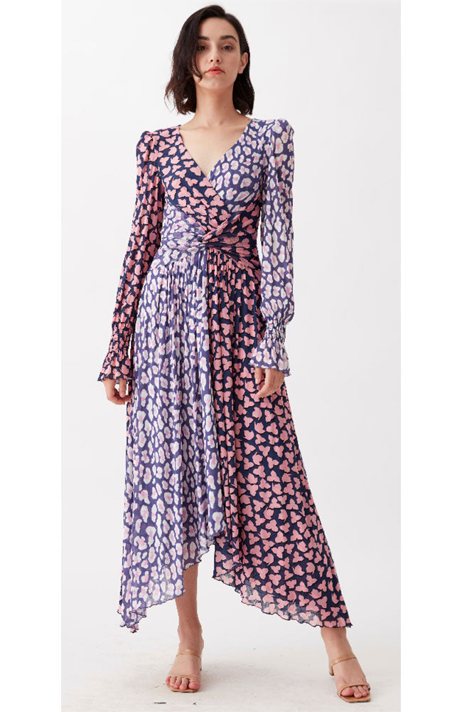 Lightweight and feminine, this mesh dress is cut for a flattering A-line fit with an elegant front knot to define the smallest part of your frame and falls into a full asymmetrical hem. Bloused sleeves with smocked bell cuff complete the look—just add sneakers or heels.