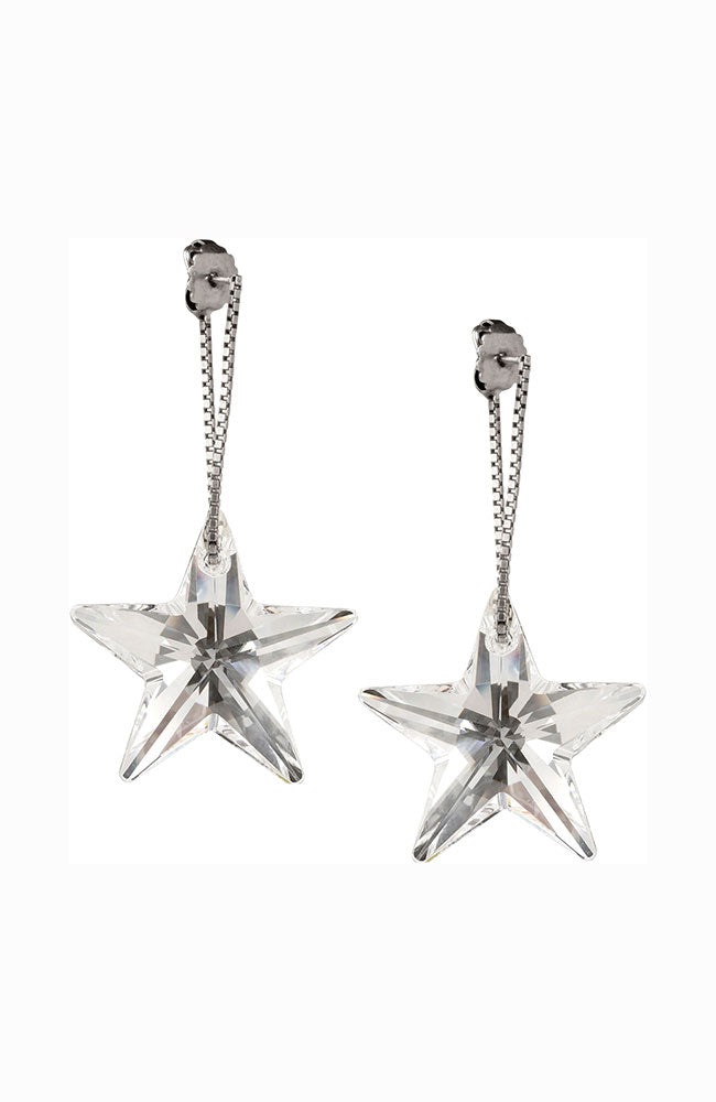 Silver Chain Star Drop Earring 2 3/4"